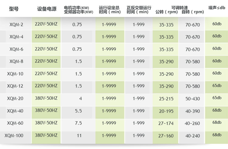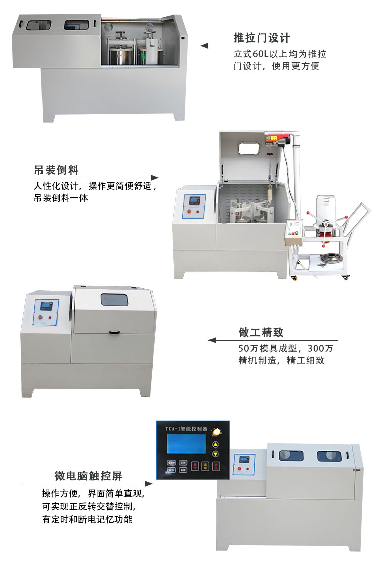 設備外殼采用加厚鋼板焊接成型加工工藝,強度高、耐沖擊、抗形變,做工精細,堅固美觀;機加零件材料嚴格熱處理工序,采用數控加工工藝,齒輪箱體采用準密封凹槽嵌入式結構,傳動齒輪選用耐磨精密齒輪,機架及結構件設計充分考慮共振因素,確保設備長期高負荷條件下穩定、安全可靠運行,并有效實現機器運轉降噪效果;液態油自潤滑裝置設計,噪音低,強度高,并配裝液態油位表,方便更換。配套吊裝及倒料裝置兩者采用一體化集成設計,倒料裝置融入振動篩分出料技術,操作簡捷,實現輕松快速取罐、卸料、裝罐,減小勞動強度,提升生產效率。采用微電腦觸控屏,操作方便,界面簡單直觀,可實現正反轉交替控制,有定時和斷電記憶功能 。