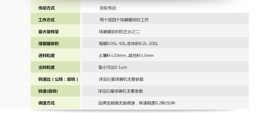 表二:輕型臥式行星式球磨機主要參數